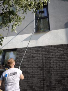 Zakres prac obejmował czyszczenie okien wraz z ramami oraz bramy garażowej. Przy okazji sąsiad z drugiej połówki skorzystał z naszych usług. Klient poprosił o środki ekologiczne i bezpieczne dla jego ogrodu.