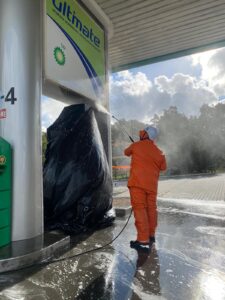 Jedno z przykładowych zleceń czyszczenia stacji paliwowej. Do mycia użyliśmy myjki ciśnieniowej z podgrzewem wody oraz funkcją pary oraz myjki z wodą demineralizowaną.