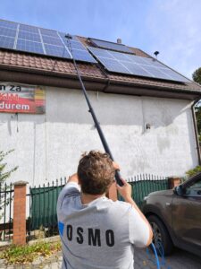 – Mycie paneli fotowoltaicznych na budynku gospodarczym