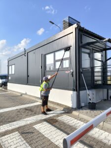 – Czyszczenie kontenerów ochrony oraz socjalnych zlokalizowanych w obrębie hali