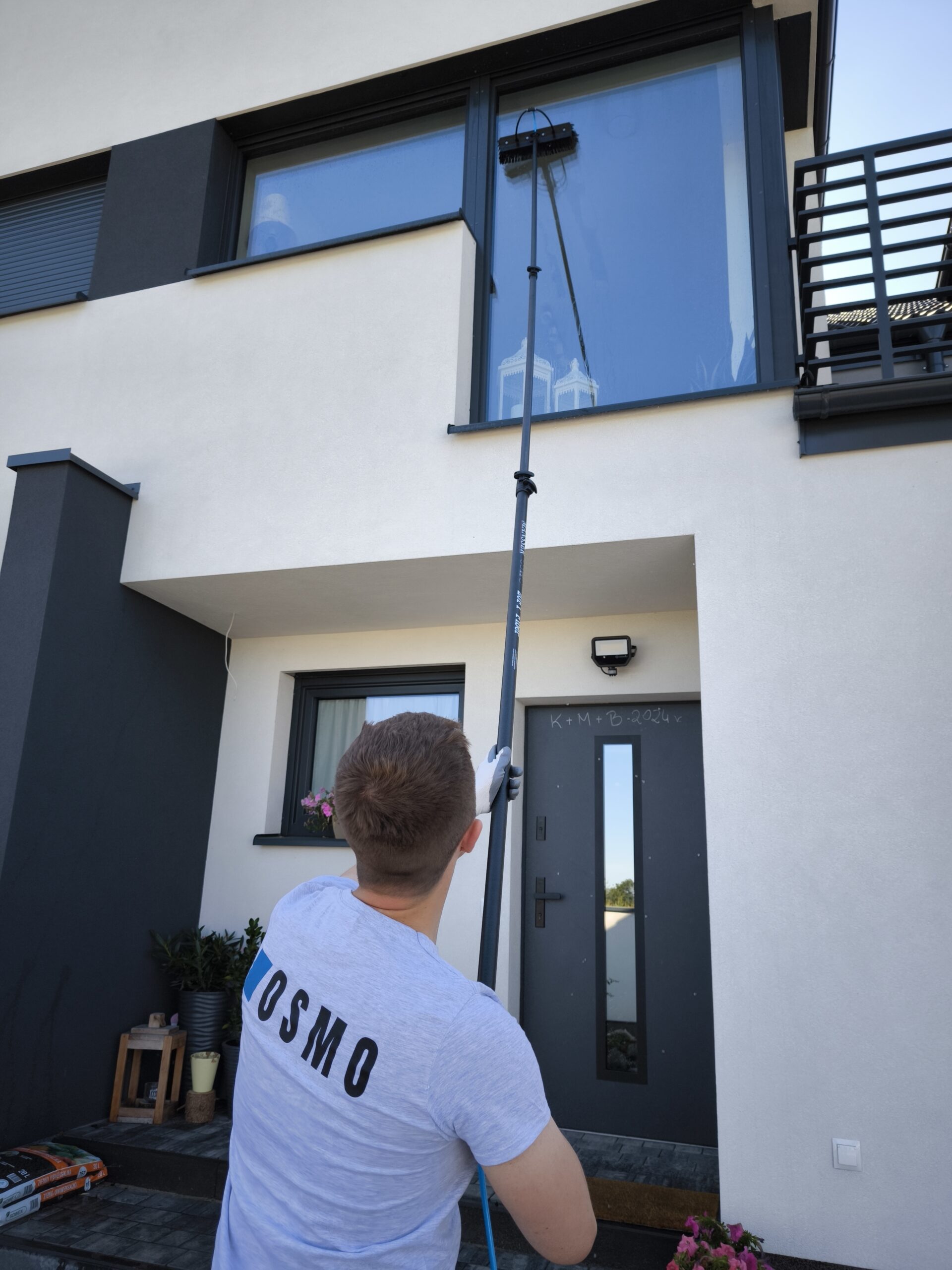 Zakres prac obejmował czyszczenie okien wraz z ramami oraz bramy garażowej. Przy okazji sąsiad z drugiej połówki skorzystał z naszych usług. Klient poprosił o środki ekologiczne i bezpieczne dla jego ogrodu.