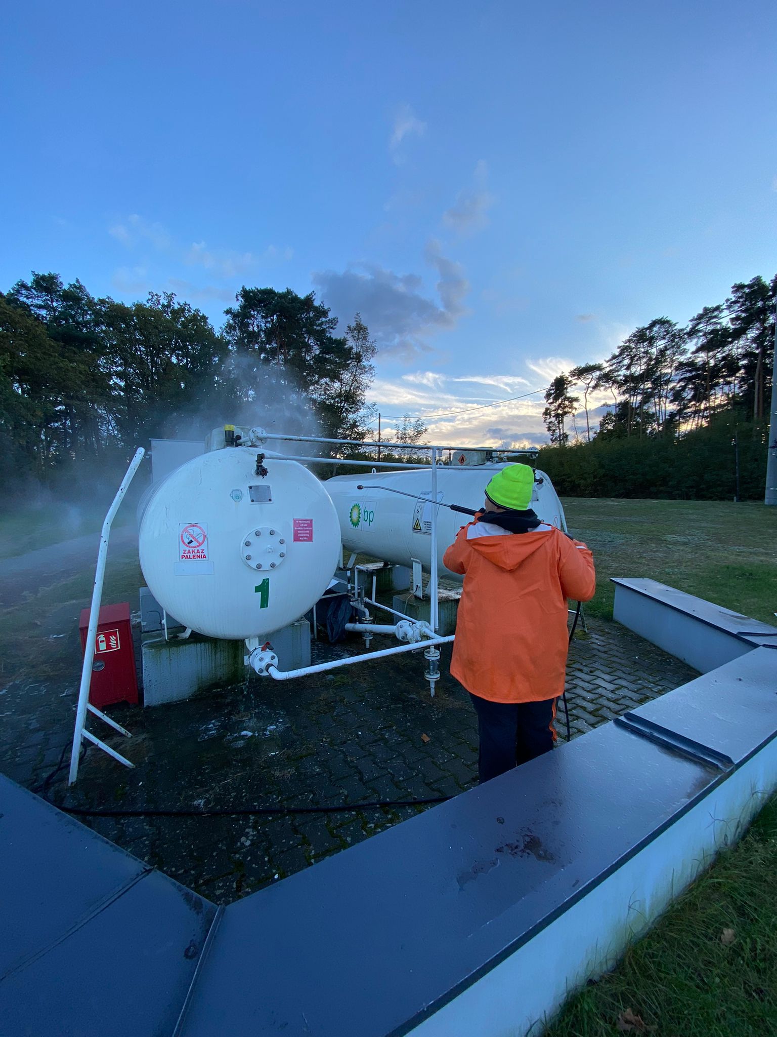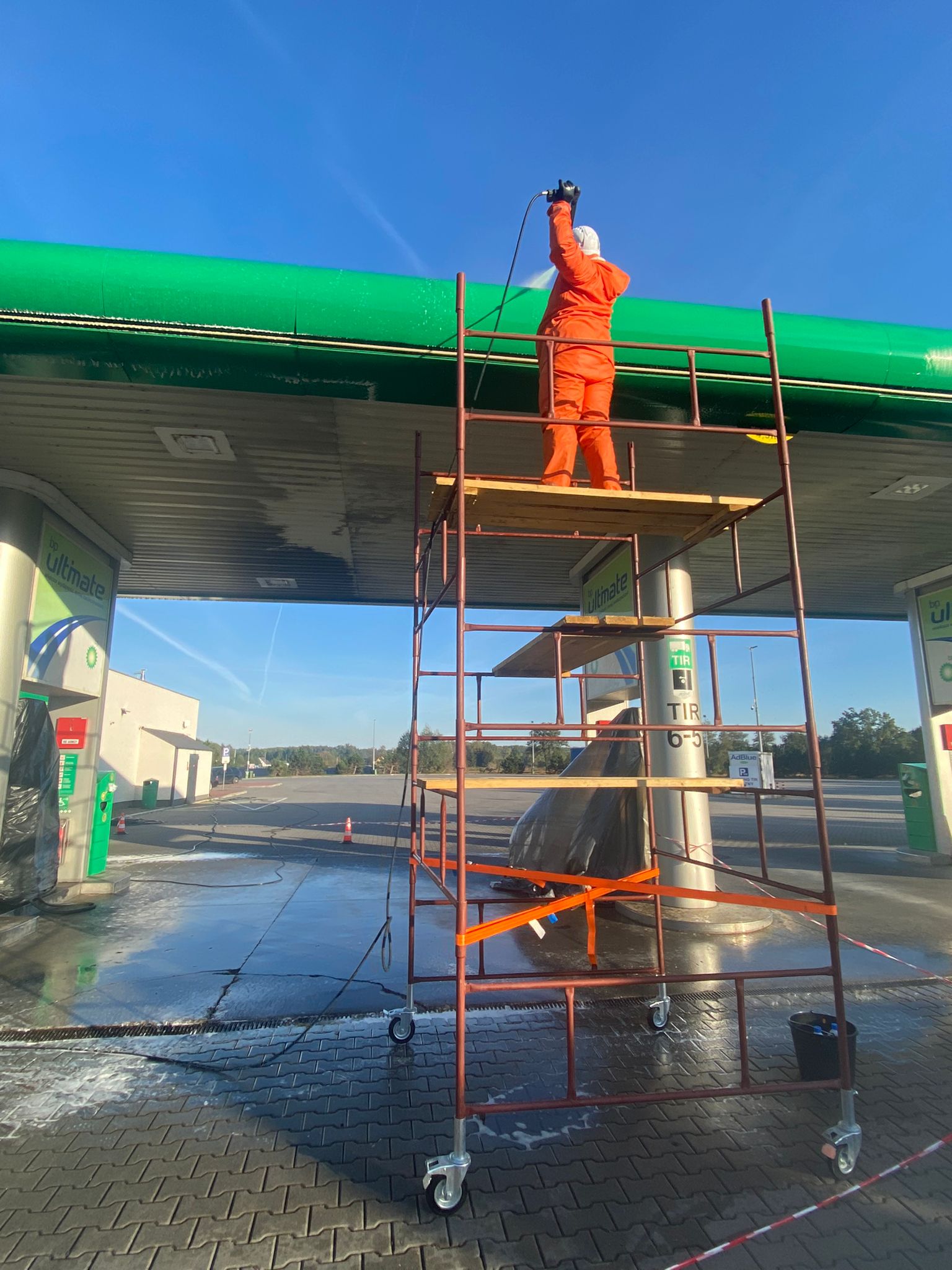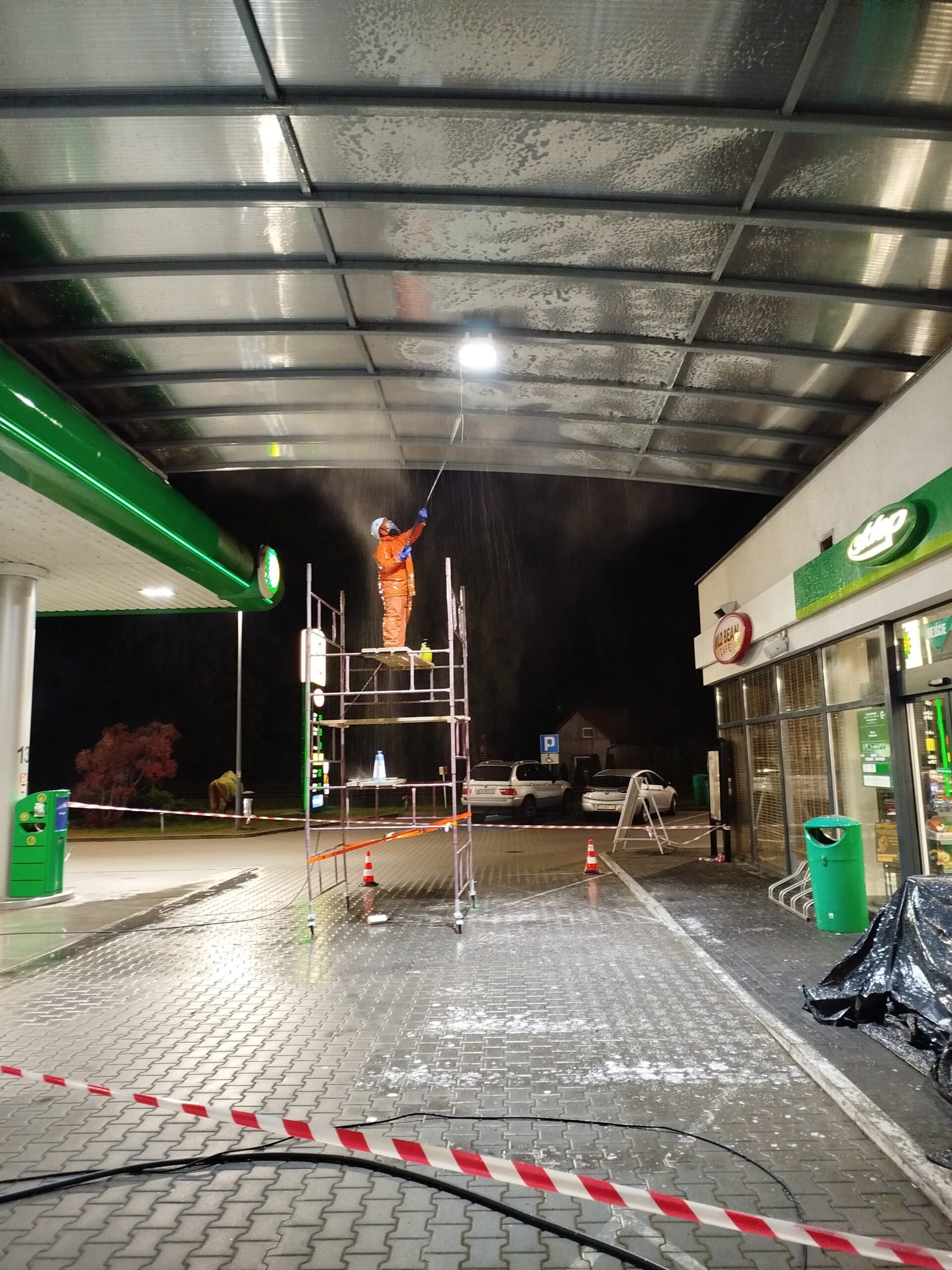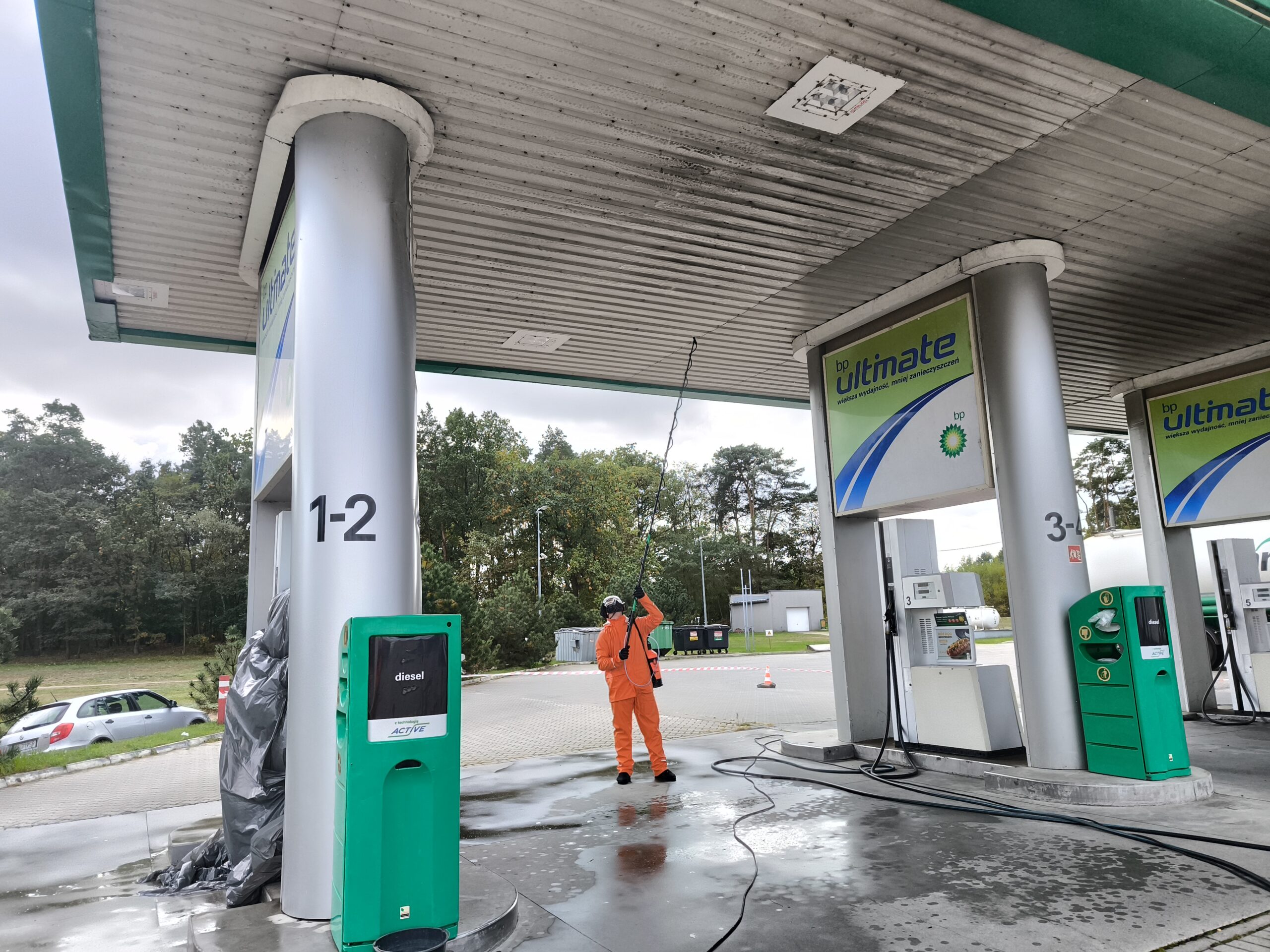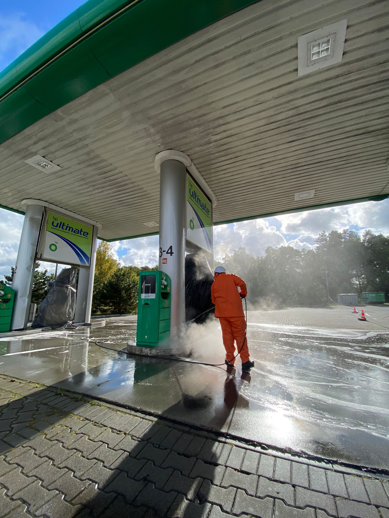 Jedno z przykładowych zleceń czyszczenia stacji paliwowej. Do mycia użyliśmy myjki ciśnieniowej z podgrzewem wody oraz funkcją pary oraz myjki z wodą demineralizowaną.