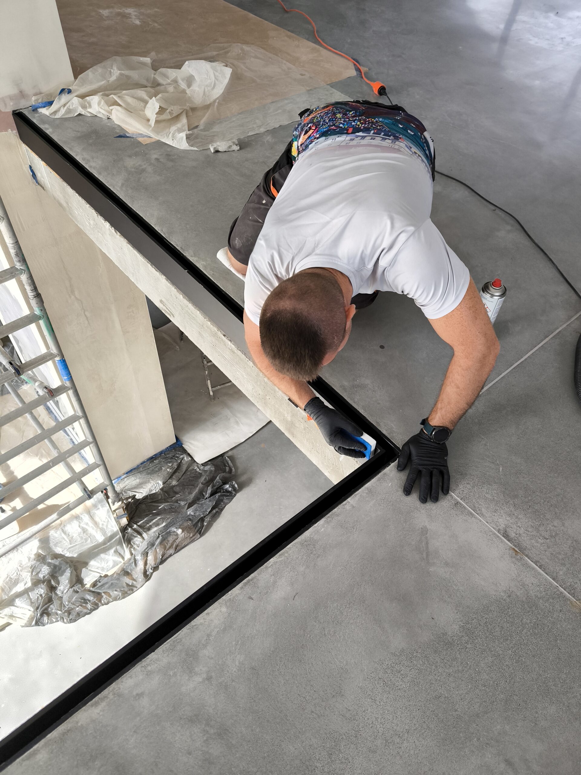 – Czyszczenie belek stalowych biegnących pod przeszkleniem frontowym oraz wokół antresoli