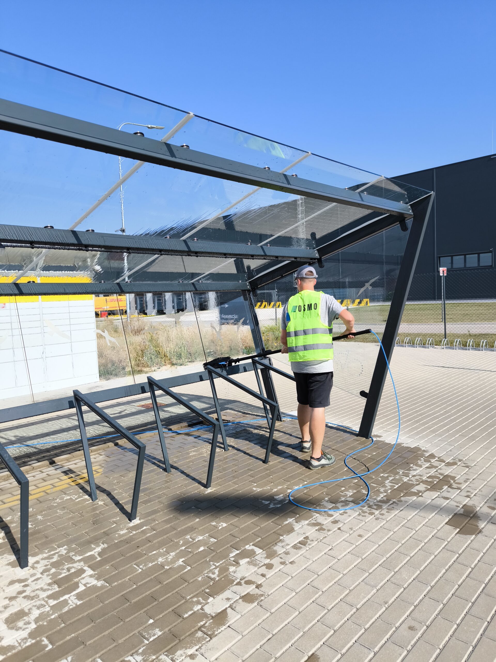 – Mycie 14 wiat przystankowych, rowerowych oraz palarni